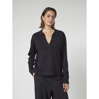 En tidløs sort pullover med krave og V-udskæring. Strikket i en blød kvalitet, der kombinerer komfort og elegance – velegnet til både hverdagsbrug og pænere lejligheder.