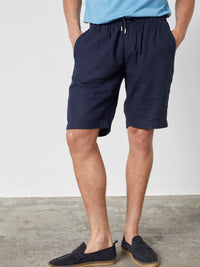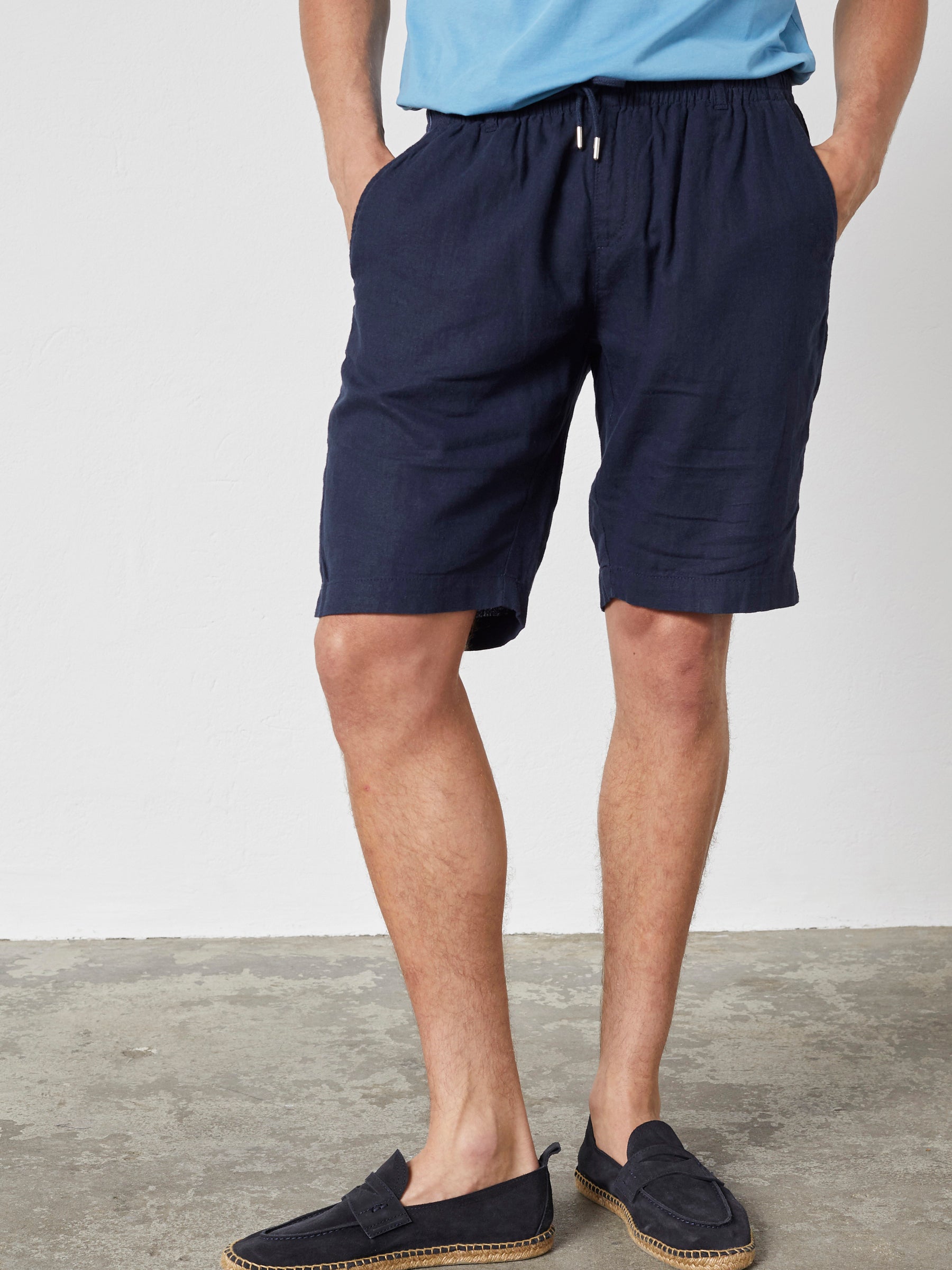 Let og afslappet herreshorts i hør- og viskoseblanding med et luftigt, sommerligt udtryk. Den bløde kvalitet og elastiske talje giver høj komfort og gør shortsene ideelle til varme dage.