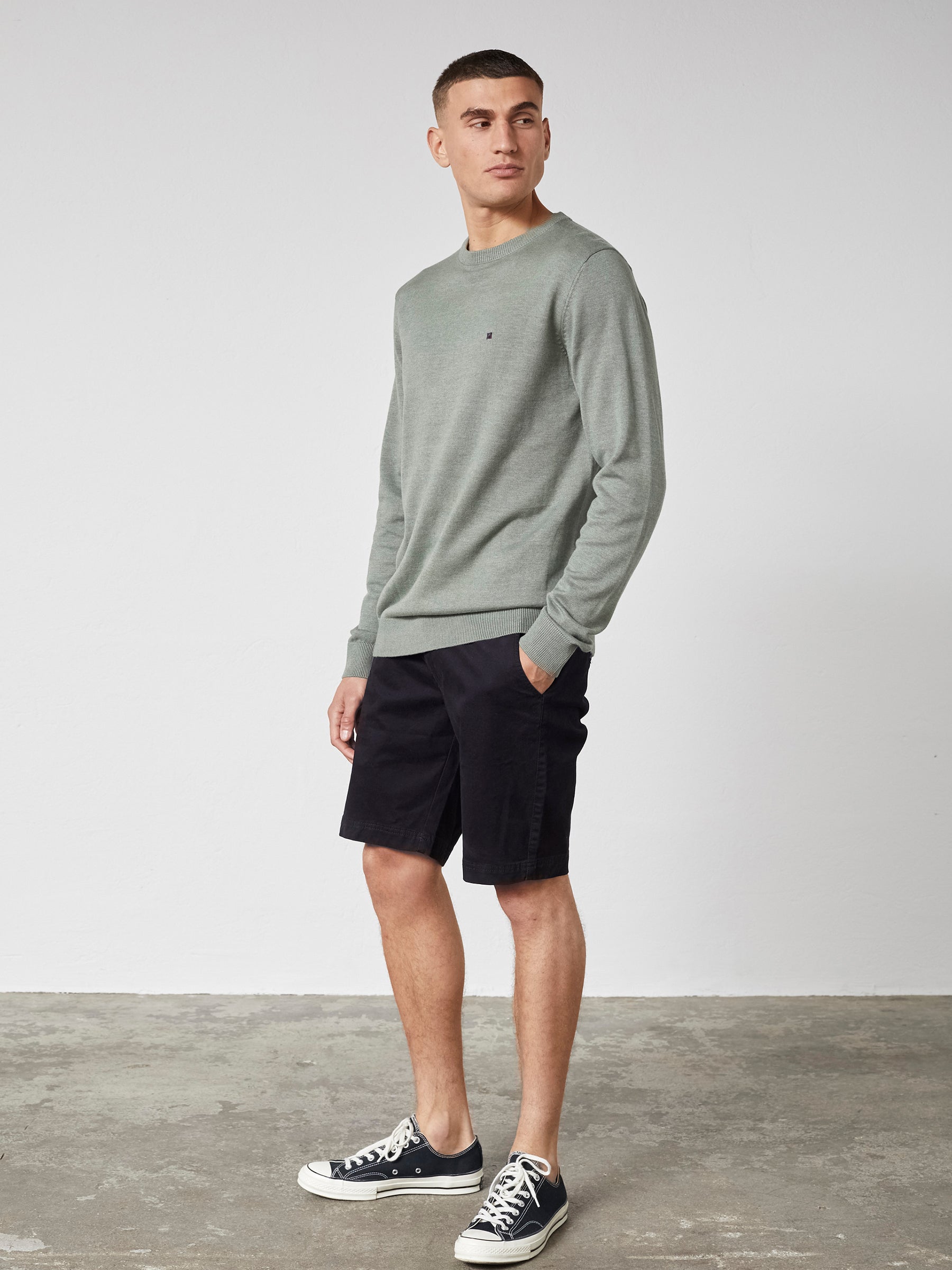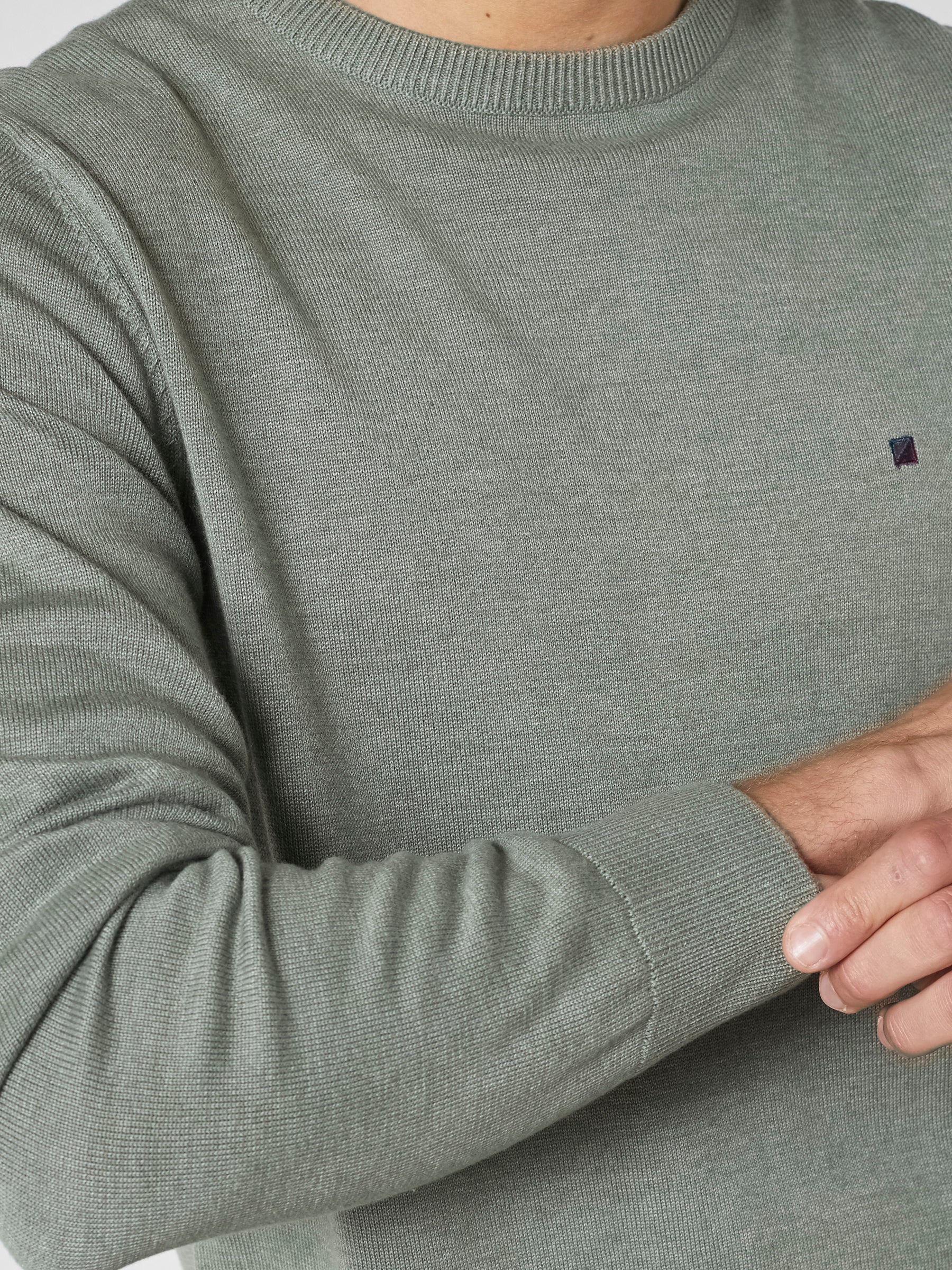 JULIAN O-NECK COTTON KNIT - Olive Melange