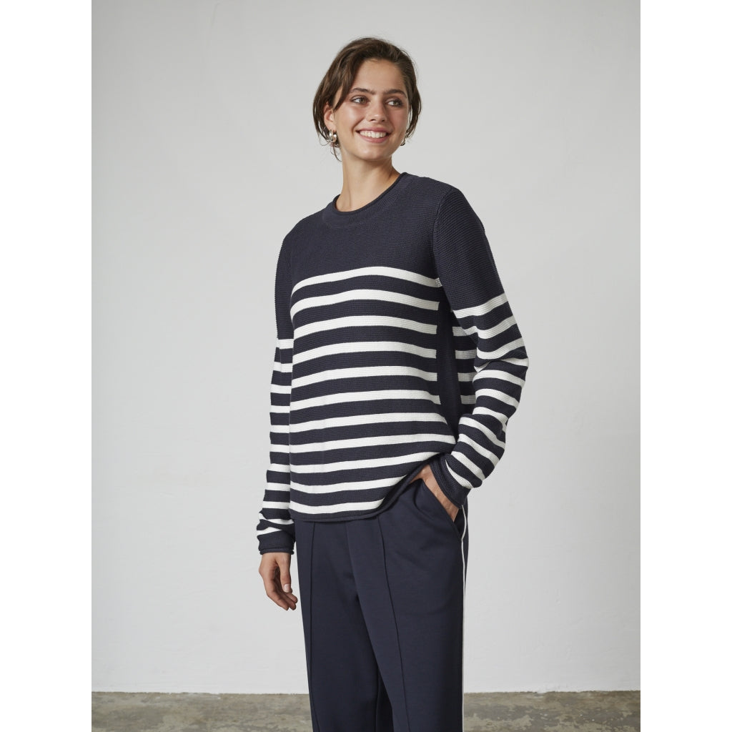 • Stribet trøje i en blød og behagelig strikkvalitet. Det klassiske mønster kombineret med en afslappet pasform gør den ideel til hverdagsbrug – både alene og som lag under en jakke.