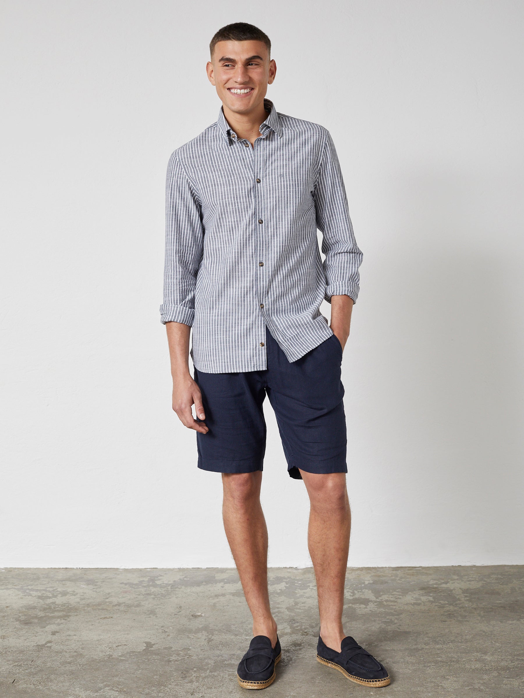 Klassisk herreskjorte i 100% bomuld med et let, stribet udtryk. En behagelig og anvendelig skjorte med ren silhuet og god komfort, velegnet til både hverdag og mere velklædt brug.