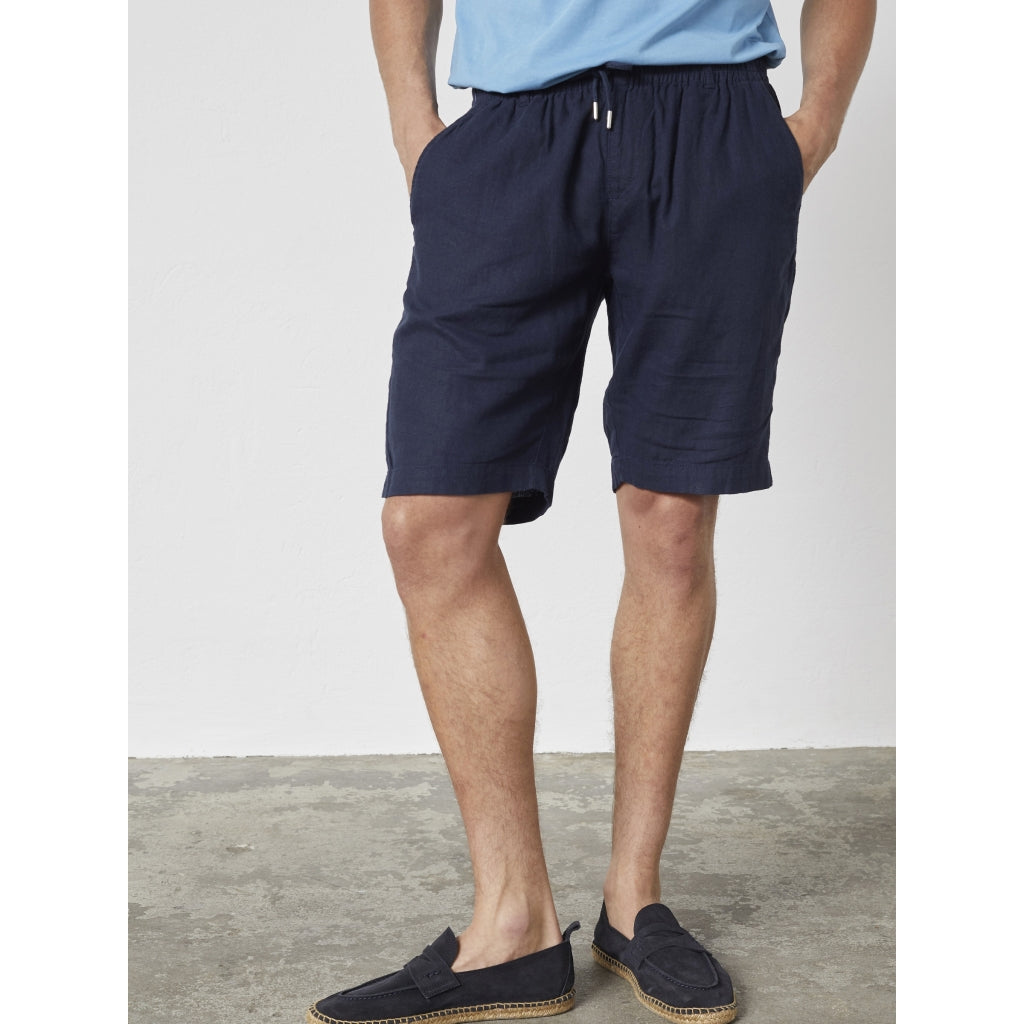 Let og afslappet herreshorts i hør- og viskoseblanding med et luftigt, sommerligt udtryk. Den bløde kvalitet og elastiske talje giver høj komfort og gør shortsene ideelle til varme dage.