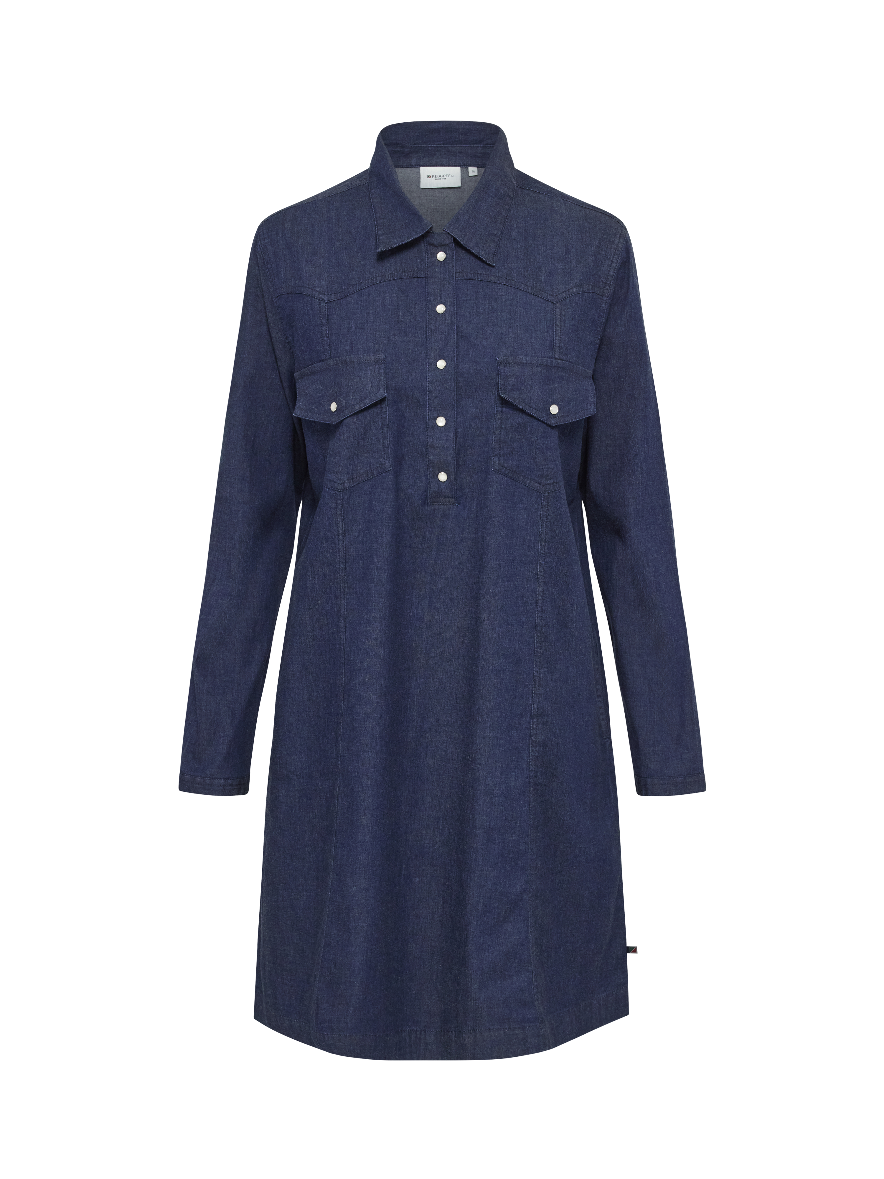 Dante-skjortekjolen har et afslappet look med knapper foran og praktiske sidelommer. To brystlommer med knapdetalje tilføjer et strejf af elegance. Lavet i en blød blanding af bomuld og elastan for komfort.