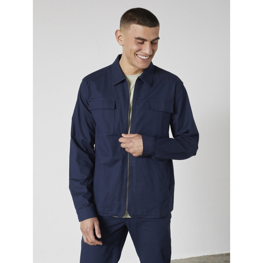 Afslappet og funktionel herrejakke i bomuldsblanding med let stræk og et rent, hverdagsvenligt udtryk. Designet med lynlåslukning og praktiske lommer, der gør jakken nem at bruge i overgangsperioder.