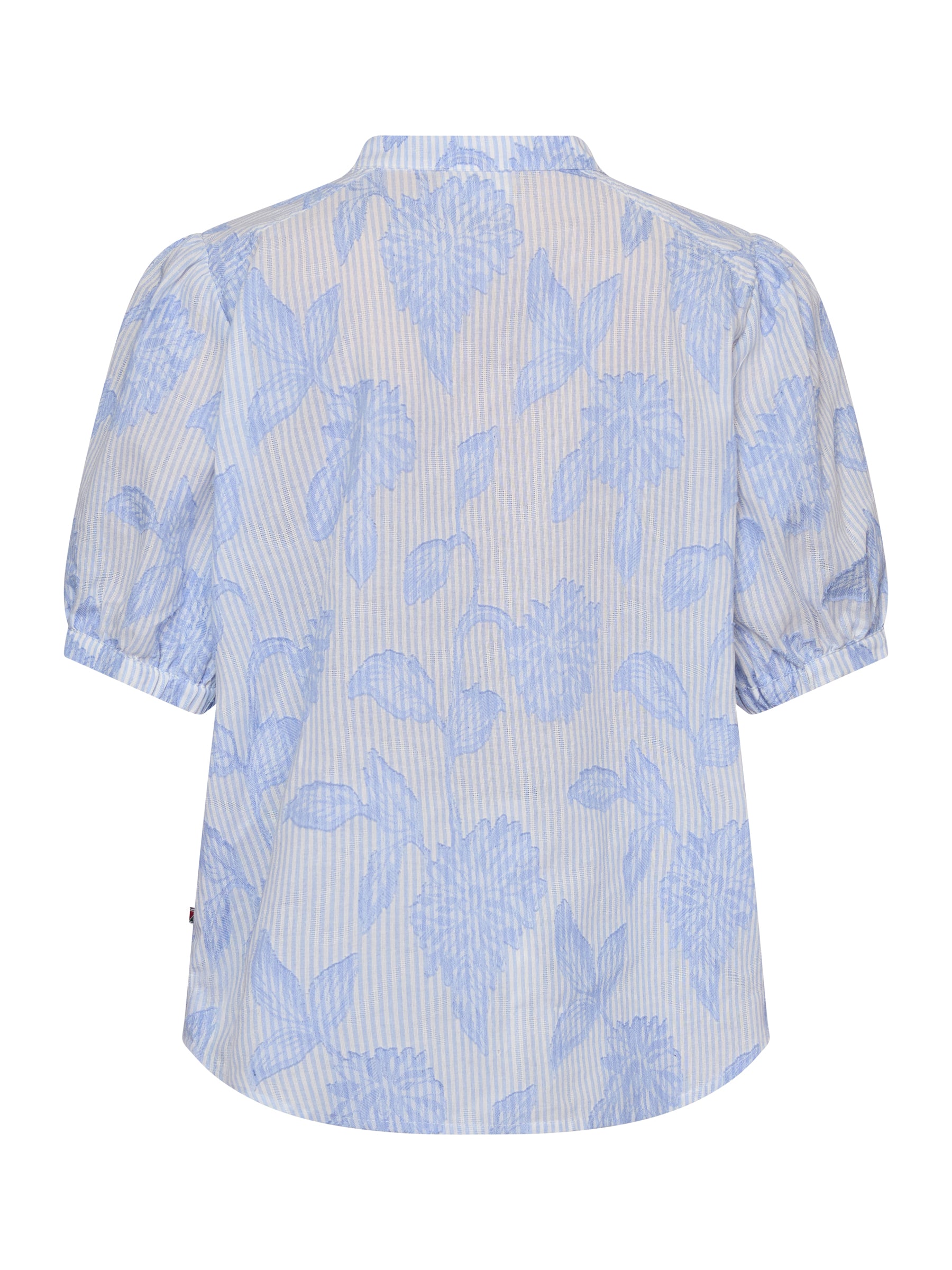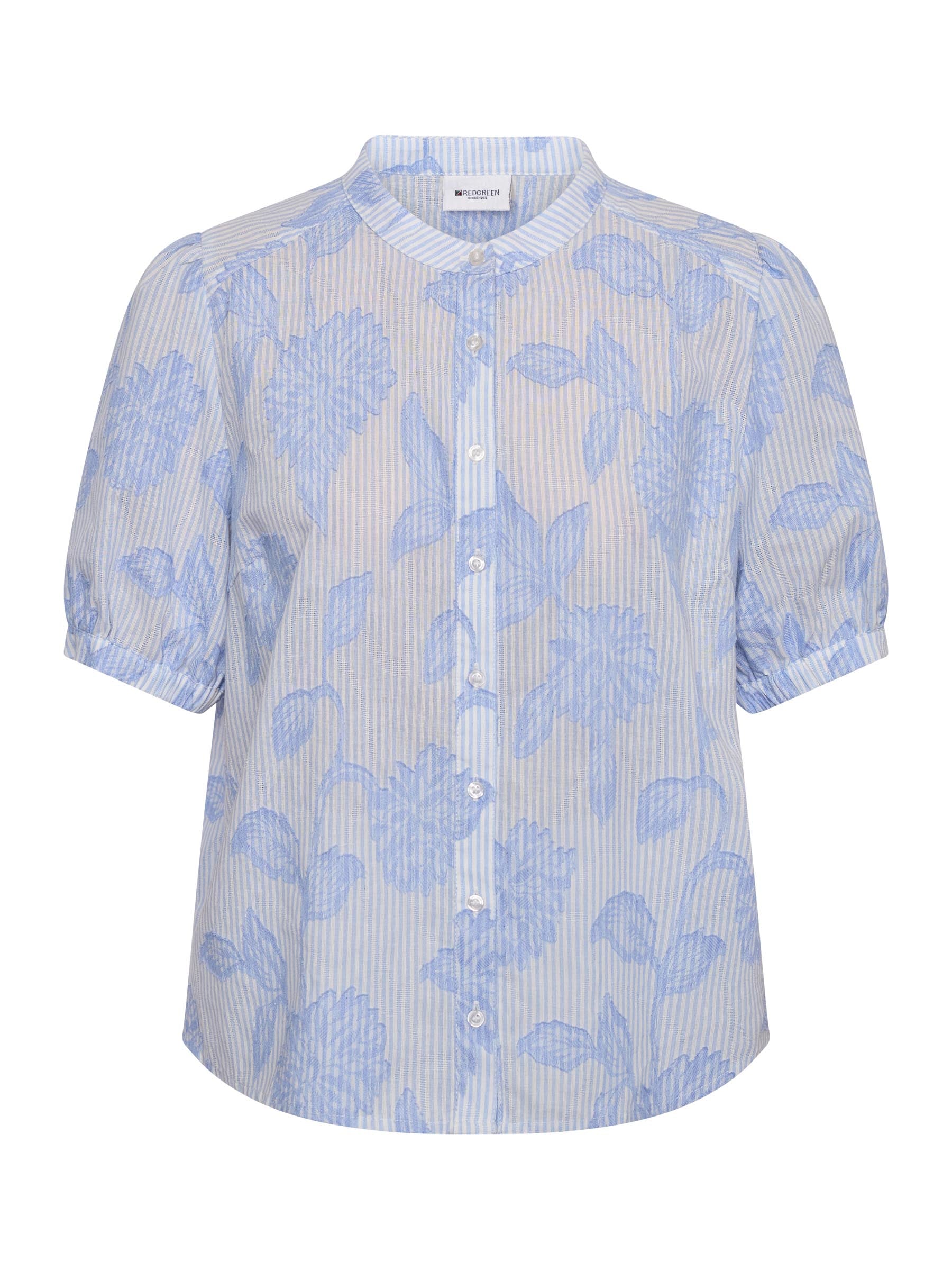 Let og feminin skjorte med korte ærmer i en blød bomuldsblanding med diskret blomsterprint og fine, lodrette striber. Skjorten har knaplukning foran, rund hals og et afslappet, tidløst udtryk.