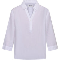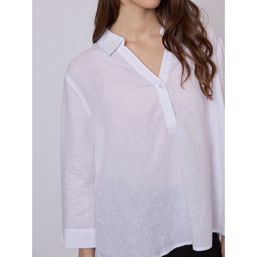 Let og luftig skjorte i en hør- og viskoseblanding med et rent, tidløst udtryk. Den afslappede pasform og den enkle stolpelukning gør den velegnet til både hverdag og varme dage.