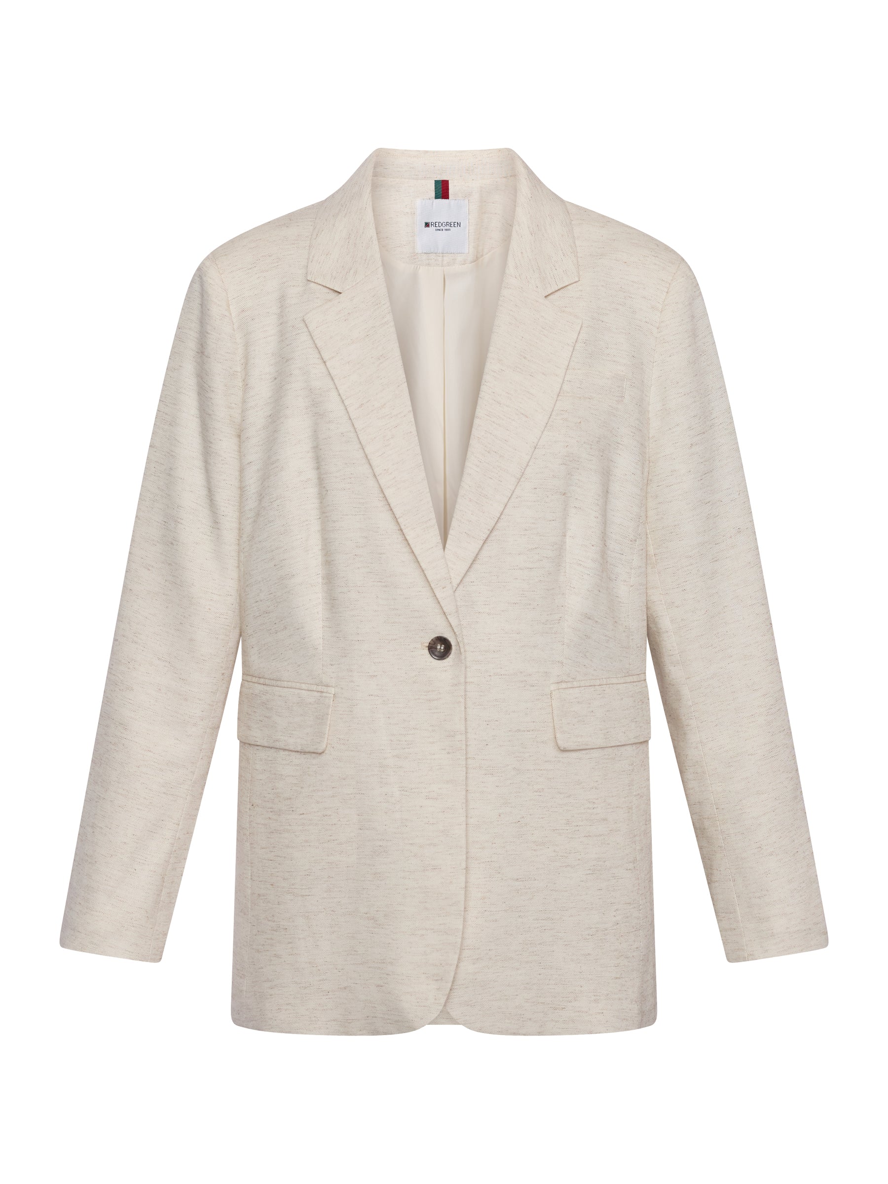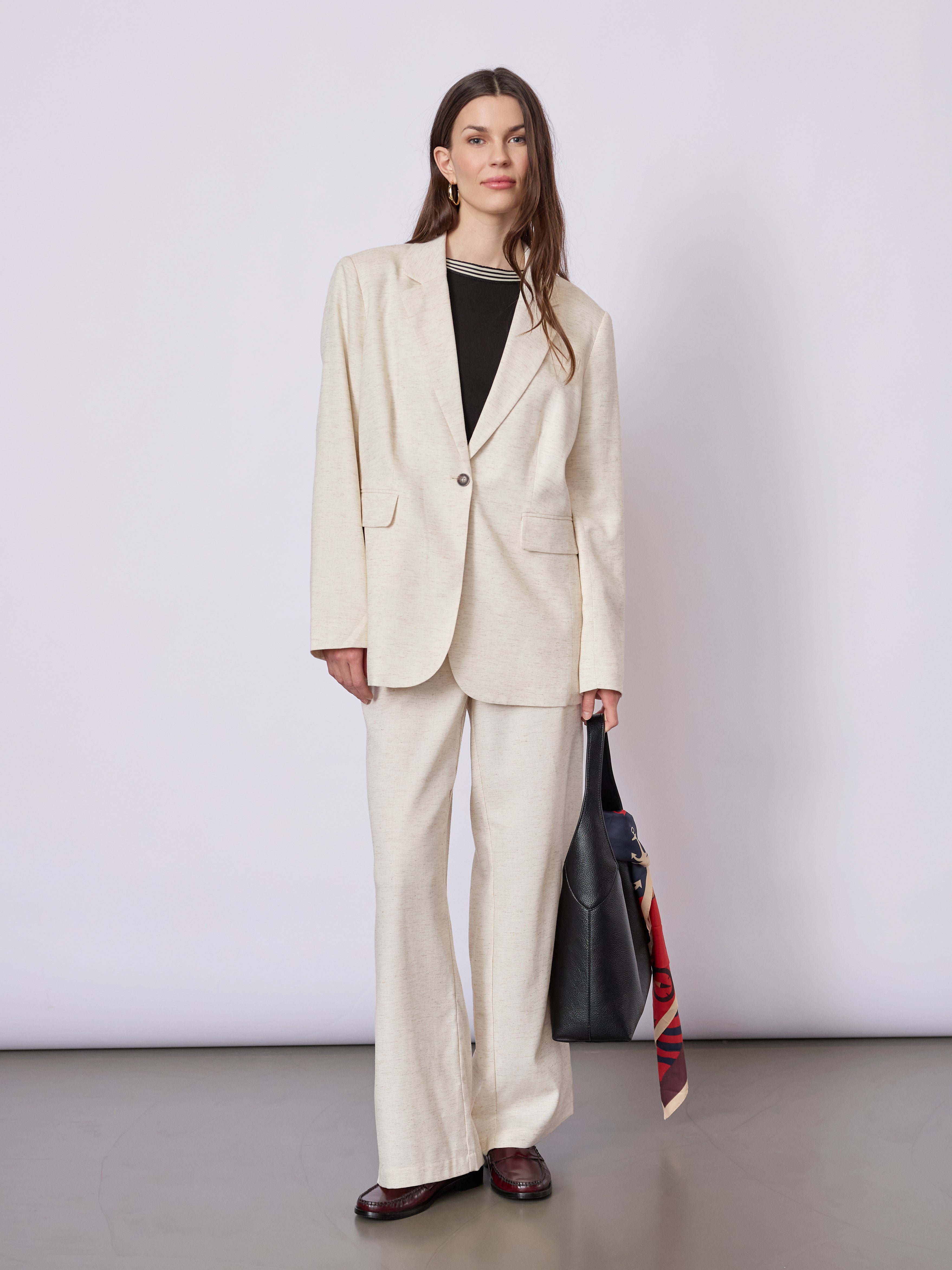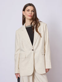 Elegant dameblazer i en let blanding af hør og viskose med et afslappet, tidløst udtryk. Den rene silhuet gør den velegnet både til hverdagsbrug og mere formelle anledninger.