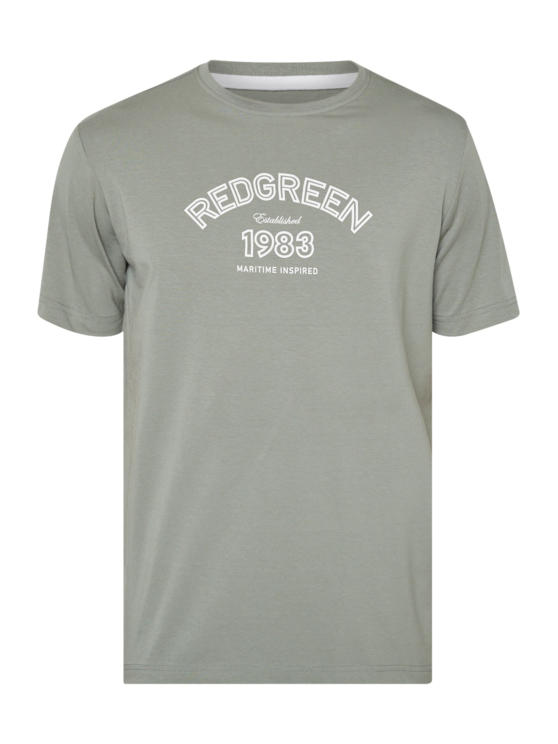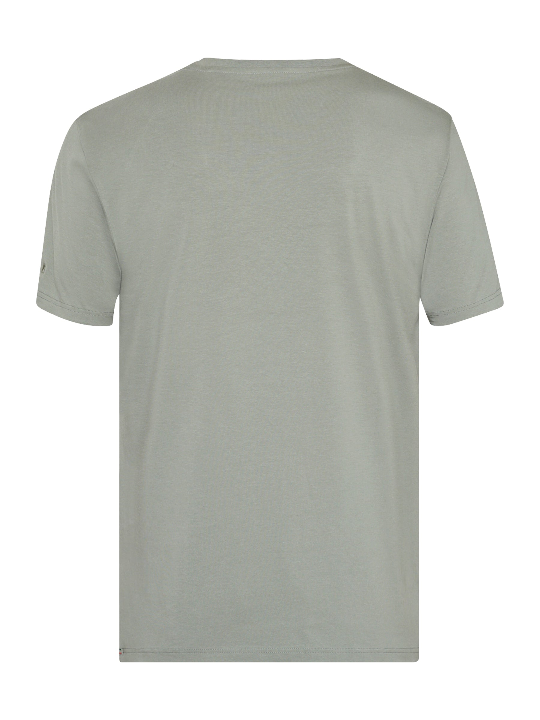 Afslappet herre-T-shirt i blød bomuldsblanding med stræk og et grafisk print på brystet. Den komfortable kvalitet og rene pasform gør T-shirten velegnet til hverdagsbrug og afslappede looks.