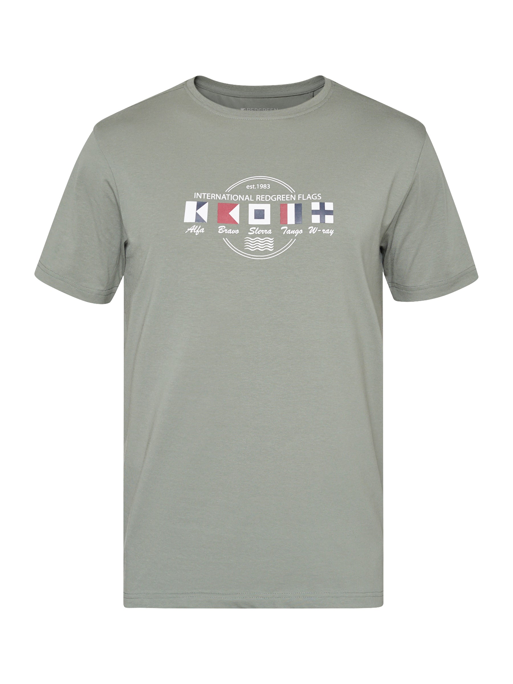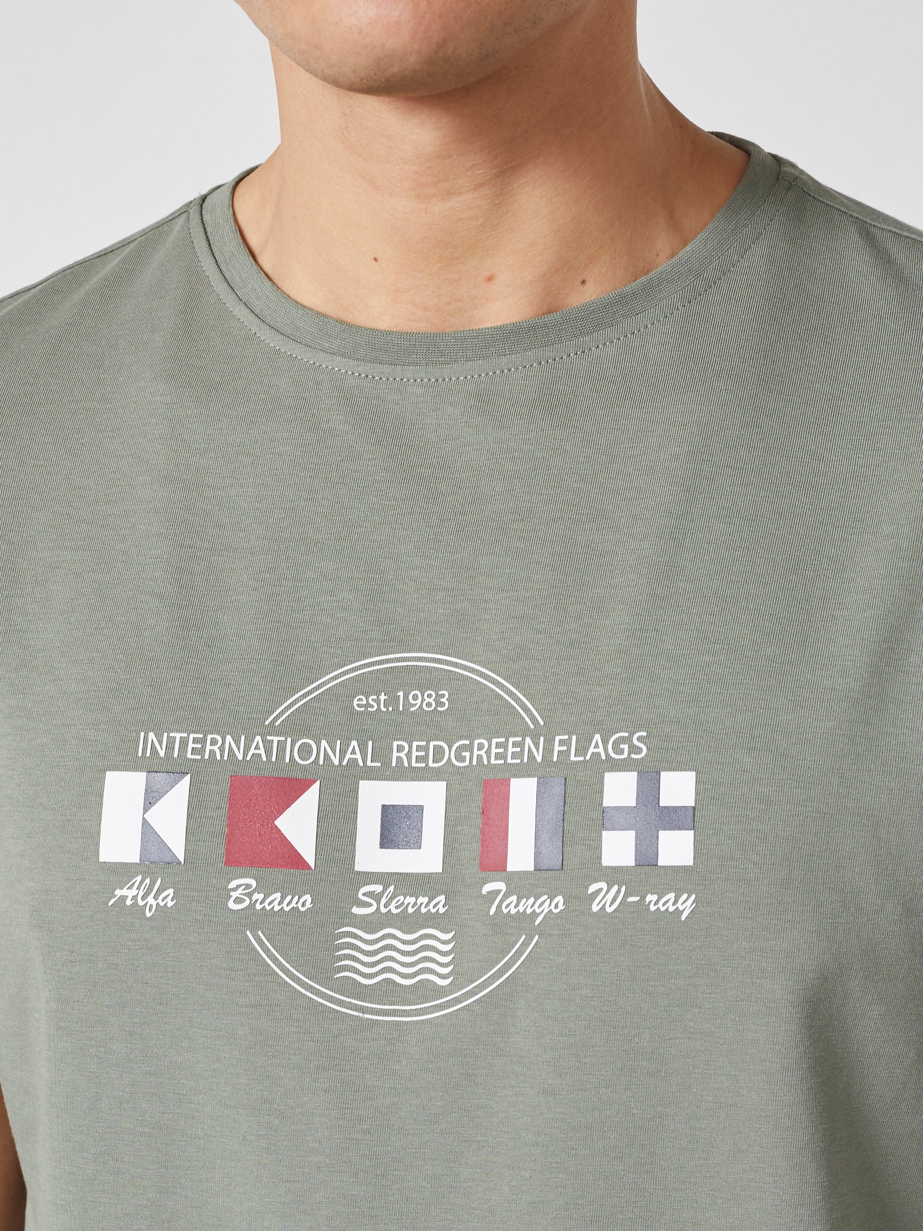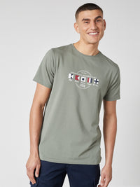 Afslappet herre-T-shirt i blød bomuldsblanding med stræk og et grafisk frontprint med maritim reference. Den komfortable kvalitet og fleksible pasform gør T-shirten velegnet til hverdagsbrug og afslappede fritidslooks.