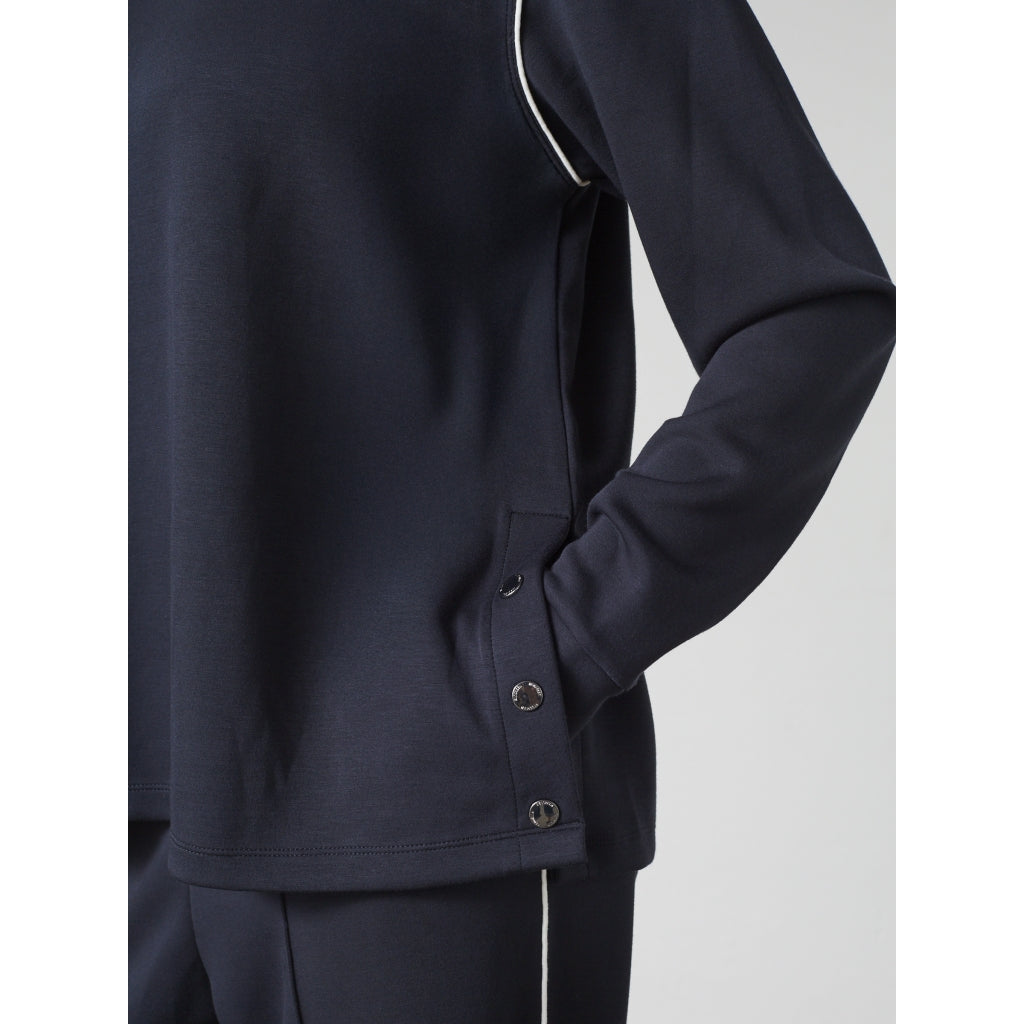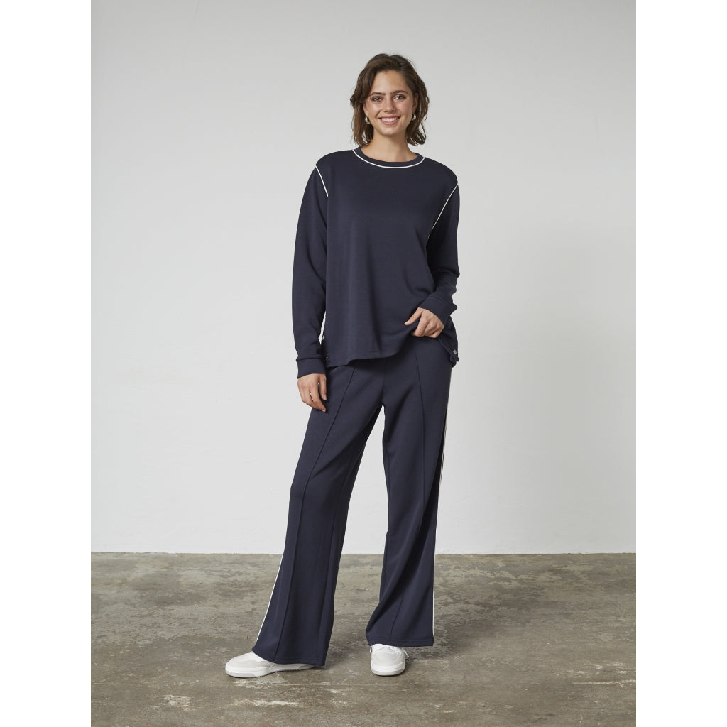 Enkel, langærmet bluse i blød kvalitet med løs pasform. Den har rund hals og små detaljer i kontrast, der giver et afslappet men gennemtænkt udtryk. Perfekt sammen med matchende bukser – eller alene til hverdag.